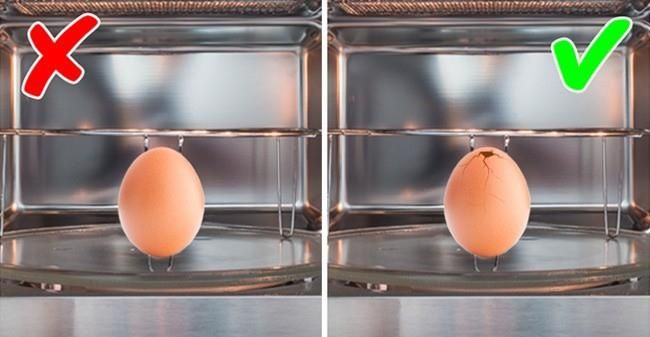 Nhiệt độ cao có thể tạo ra nhiều hơi nước bên dưới lớp vỏ. Nếu hơi nước không thoát ra, chúng sẽ phát nổ. Có thể chúng không làm hỏng lò vi sóng nhưng làm cho công việc dọn dẹp trở nên phiền toái. Nếu vẫn muốn đặt trứng vào lò vi sóng, hãy chọc vài lỗ nhỏ trên đầu trứng để hơi nước thoát ra.