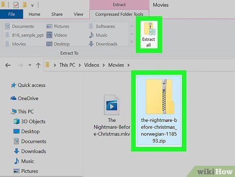 Giải nén tệp phụ đề vào cùng thư mục với bộ phim. Sử dụng một chương trình nén như WinRAR hoặc 7-Zip để giải nén tệp '.srt' vào cùng thư mục với video của bạn.