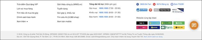 - Thông tin địa chỉ, số điện thoại trên trang web không rõ ràng và không nằm trong danh sách hệ thống siêu thị, trung tâm bảo hành được công bố tại trang web chính thức: https://www.thegioididong.com/