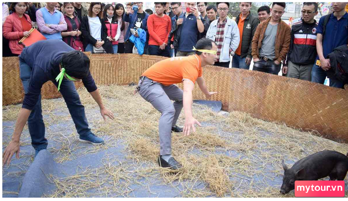 Một trò chơi ngày Tết thú vị khác để thử là bắt lợn khi đeo mắt bịt. Người chơi cần sử dụng sự khéo léo, nhanh nhẹn và khả năng đánh giá tốt để bắt lợn trong thời gian ngắn nhất. Chuẩn bị một con lợn nhỏ, một chiếc khăn che mắt và một vòng tròn. Người chơi sẽ bịt mắt và đứng trong vòng tròn. Đội nào bắt được lợn trước sẽ giành chiến thắng.