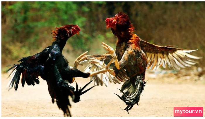 Trong trận đấu, hai con gà sẽ xuất trận và sử dụng mỏ và chân để tấn công lẫn nhau. Trận đấu kết thúc khi một trong hai con gà bỏ chạy hoặc bị thương nặng.