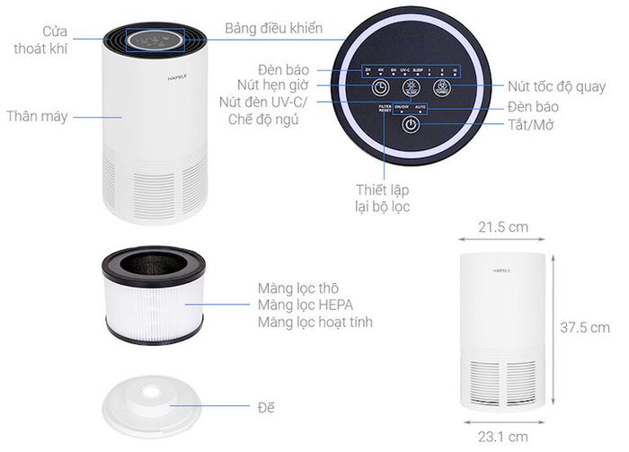Hafele CF-8116 (537.82.710) với thiết kế nhỏ gọn, làm sạch không khí hiệu quả cho không gian 20 – 25m2, bộ lọc 3 cấp bao gồm lọc thô, lọc Hepa, lọc carbon hoạt tính và đèn UV diệt khuẩn, cảm biến bụi mịn PM2.5. Máy hiển thị chất lượng không khí qua đèn Led, đồng thời lọc mạnh mẽ, bảo vệ không gian sống gia đình.