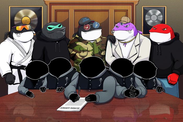 Đương nhiên, đó không phải là điều nó thực sự nói. Điều nó thực sự nói là: “Def Jam ký hợp đồng với nhóm nhạc avatar kỹ thuật số The Whales.” Khi mở nó, tôi biết rằng hãng đĩa mà tôi đã tiêu thụ từ thời kỳ máy thu âm cassettes, hãng đã ký hợp đồng với một nhóm những nhân vật cá voi hoạt hình được tạo ra bởi công ty Web3 mang tên Wagmi Beach. Đó là một đối tác giữa hãng đĩa và The Catalina Whale Mixer, mà theo Billboard nói là “một bộ sưu tập gồm 5,555 avatar NFT trên chuỗi khối Solana.” Nói một cách dễ hiểu, một hãng đĩa lâu dài đã ký hợp đồng với một số đồ sưu tập số để sản xuất âm nhạc.