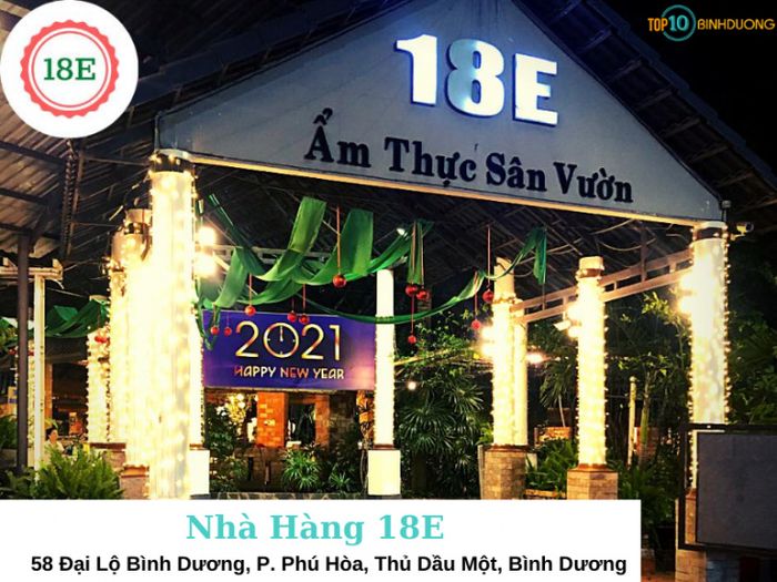18E là chuỗi nhà hàng nổi tiếng tại Bình Dương với không gian rộng rãi, thoáng đãng, kết hợp giữa hương vị đồng quê và sự hiện đại.