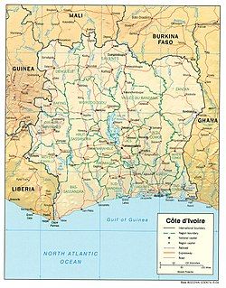 | Biên giới | Tổng chiều dài biên giới 3.458 km (2.149 mi) Liberia: 778 km (483 mi) Ghana: 720 km (450 mi) Guinea: 816 km (507 mi) Burkina Faso: 545 km (339 mi) Mali: 599 km (372 mi) |