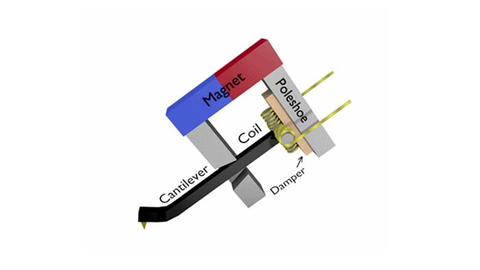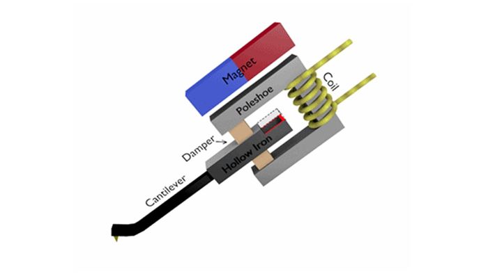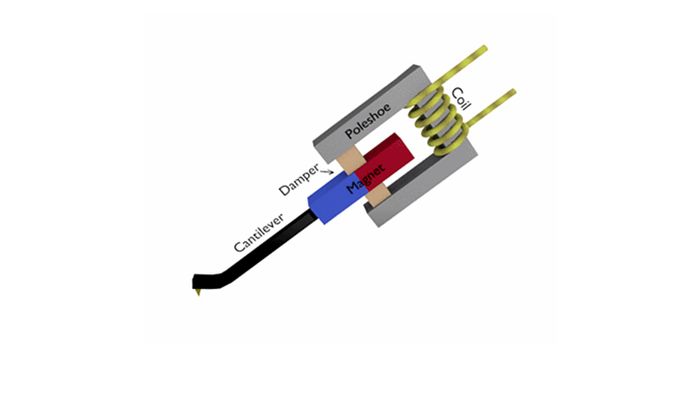Thiết kế kim MP bao gồm dây coil cố định ở một đầu, ở đầu còn lại là lá kim loại được nhiễm từ (sắt hoặc hợp kim sắt + niken), giúp tăng cường khả năng nhiễm từ. Kích thước của lá kim loại phụ thuộc vào kim stylus, được thiết kế nhỏ và mảnh để tăng độ tương thích và chính xác khi dò trên rãnh đĩa.
