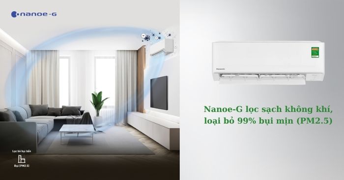 Máy Lạnh Panasonic Inverter 1.5 Hp CU/CS-PU12AKH-8 trang bị hệ thống lọc sạch không khí, loại bỏ 99% bụi mịn (PM2.5) với công nghệ Nanoe-G