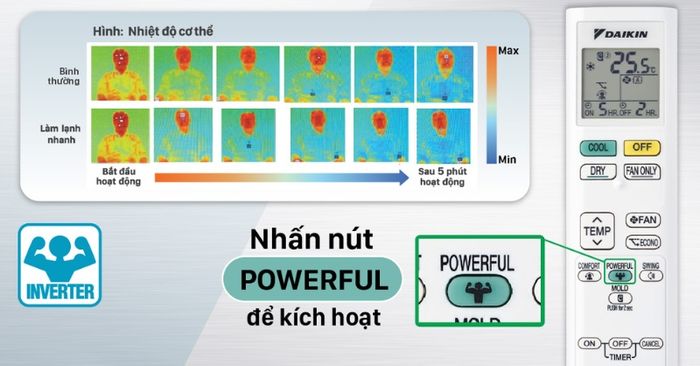 Máy Lạnh Daikin Inverter 1 Hp ATKF25XVMV/ARKF25XVMV với tính năng làm lạnh nhanh Powerful