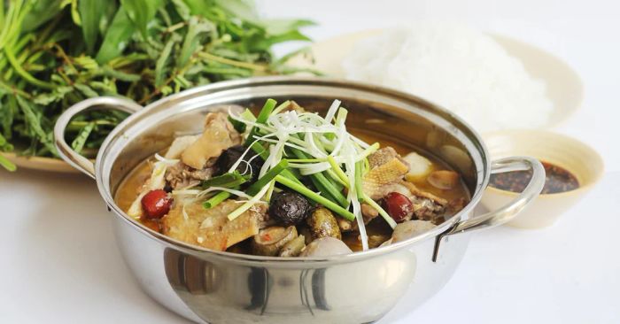 Located at the end of Quan Thanh Street, near the Ba Dinh District cultural center, is a duck restaurant well-known in Hanoi - Duck of Fortune, specializing in signature duck dishes with duck and snakehead soup. The duck hotpot here is praised by diners far and wide for its balanced and flavorful broth, tender and fragrant duck meat. Additionally, the restaurant is famous for other dishes such as boiled duck, duck and bamboo shoot soup, duck porridge, and more.