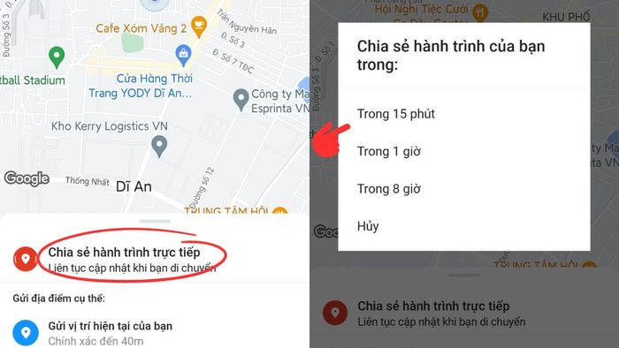 With the journey sharing feature, users can set the time for 15 minutes, 1 hour, or 8 hours. If not set, Zalo will allow you to share your journey directly until you disable this feature or exit Zalo.