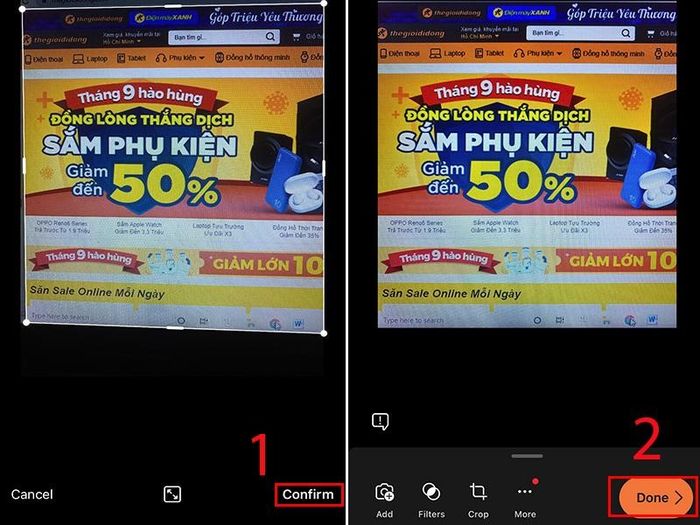 Step 2: After opening the Microsoft Lens app, swipe to the 'Documents' section on the interface. Here, adjust the document for scanning as desired and then edit, crop the image after scanning. Then, select 'Confirm' and press 'Done'.