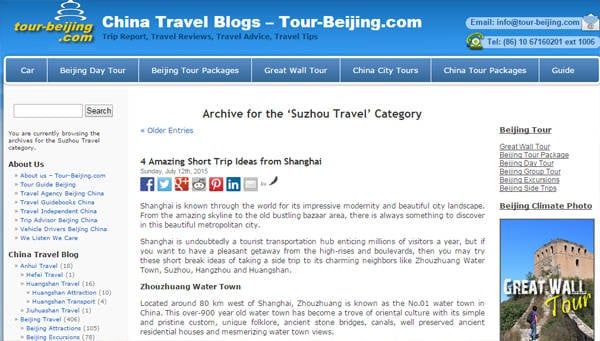Tour-beijing.com is not as famous as the two websites mentioned above, but it is greatly beloved by many users, even considered a 'lifesaver' in a country where English is hardly spoken. Essentially a tour booking site, its blog section – where bloggers share their experiences – is the most visited area.