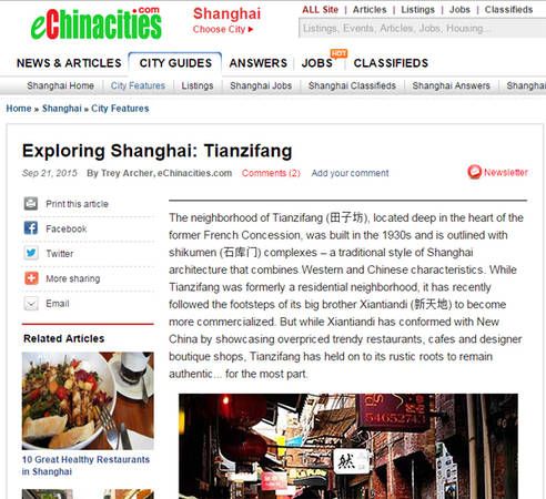 Within the City Guides section, the website offers travel advice for 41 cities, with the most detailed information available for Beijing, Shanghai, Guangzhou, Shenzhen, and more. You'll find detailed recommendations for the best restaurants and cafes in areas like Tianzifang (Shanghai), including opening hours, prices, recommended dishes, and pinpointed locations on the map.