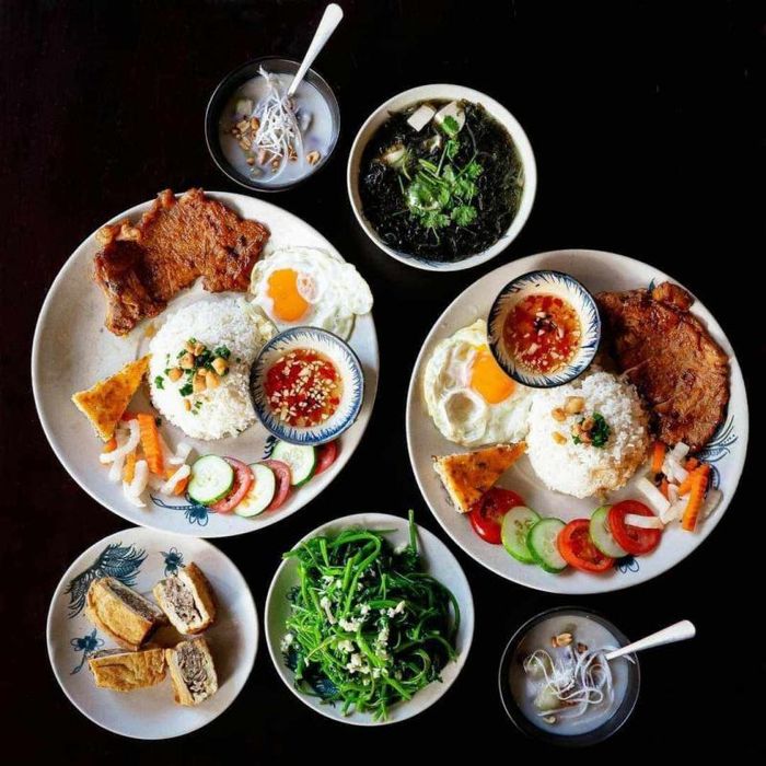 Regardless of where you go, no matter how many delicious dishes you savor, rice remains a familiar choice for Asians. In Da Nang, a city known for tourism, traditional, affordable, and easy-to-eat broken rice is indispensable. One such popular choice among both tourists and locals is Rice Bliss at Thanh Truong. This is a budget-friendly broken rice spot, known for its reputation in Da Nang. The renowned grilled pork ribs here have made the restaurant stand out.
