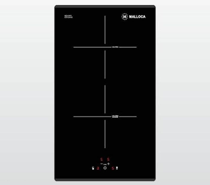 The Malloca Domino MDI 302 induction cooktop is an imported line from Spain, bringing luxury and sophistication. The product's design includes two beautifully crafted and elegant cooking zones, seamlessly integrated to optimize kitchen space.