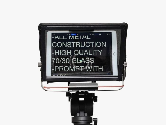 Đọc từ một máy đọc bản tin có vẻ rõ ràng nếu bạn không nhìn thẳng vào màn hình, nên đáng giá khi có một thiết bị như Glide Gear TMP100. Nó phản ánh văn bản từ máy tính bảng hoặc điện thoại thông minh và hiển thị nó trên một miếng kính đặt trước ống kính của bạn. Điều này cho phép bạn đọc và nhìn thẳng vào ống kính cùng một lúc, tất cả trong khi giữ cho văn bản cuộn không xuất hiện trong hình ảnh. Glide Gear TMP75 ($149) cũng là một lựa chọn tiện ích mà chúng tôi thích; nó có thể gắn vào máy tính xách tay để bạn có thể sử dụng webcam của máy tính của mình, tuy nhiên, mẫu nhỏ này chỉ phù hợp với điện thoại.