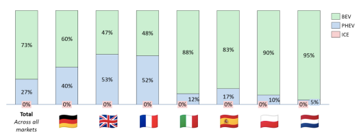 Và với BEVs trở thành điều bình thường mới, từ năm 2027 không có loại động cơ nào khác dự kiến sẽ giữ hơn 20% thị trường.
