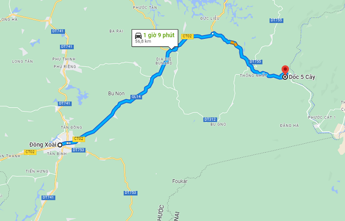 Cách di chuyển đến Dốc 5 Cây ở Bình Phước