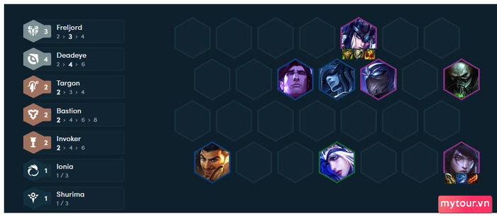 - Tộc/Hệ: 4 Thiện Xạ - 3 Freljord - 2 Targon - 2 Can Trường - 2 Hiệu Triệu Nhân