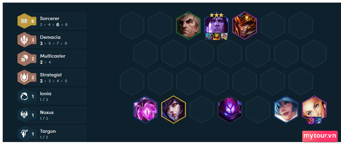 - Tộc/Hệ: 6 Bí Ẩn - 2 Pháp Sư Đa Chú - 3 Demacia - 2 Quân Sư
