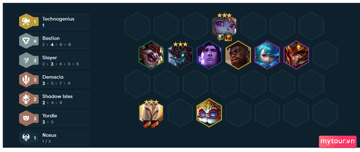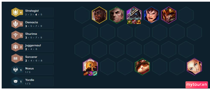 - Tộc/Hệ: 4 Quân Sư - 3 Shurima - 3 Demacia - 2 Dũng Sĩ