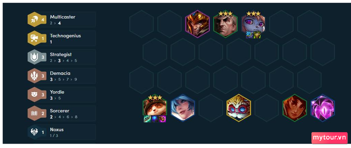 - Tộc/Hệ: 4 Pháp Sư Đa Chú - 3 Quân Sư - 3 Demacia - 3 Yordle -2 Phù Thủy