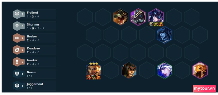 - Tộc/Hệ: 3 Freljord - 5 Shurima - 2 Đấu Sĩ - 2 Thiện Xạ - 2 Hiệu Triệu Nhân