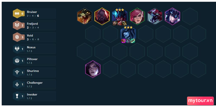 - Tộc/Hệ: 6 Đấu Sĩ - 3 Hư Không - 2 Freljord
