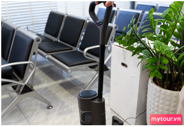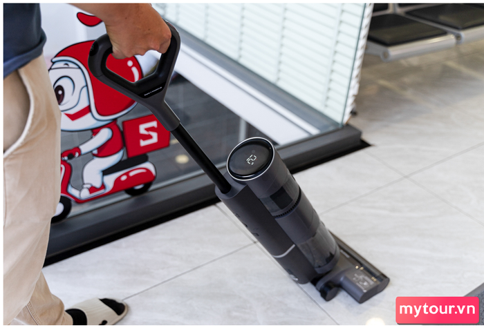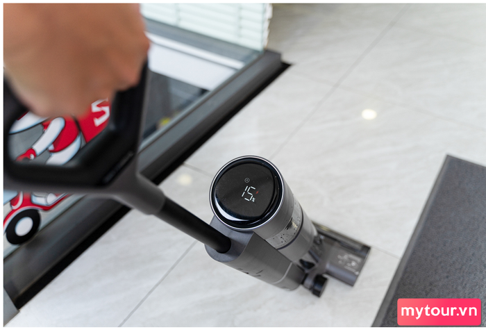 Hiển thị thông số trực quan trên màn hình LEDTay cầm được thiết kế với nhựa nhám và khung bo tròn, giúp người sử dụng thoải mái di chuyển. Ngoài ra, 3 nút bấm trên tay cầm cho phép tắt/mở máy, chuyển đổi chế độ hút Auto và Turbo, cũng như tự động giặt sạch cuộn lau, tạo nên trải nghiệm sử dụng thuận tiện.