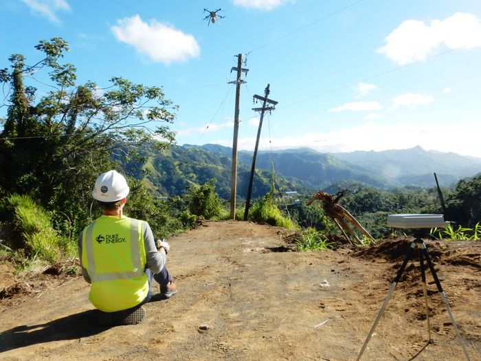 Duke Energy có trụ sở tại Bắc Carolina, đã có 200 nhân viên tình nguyện ở Puerto Rico từ ngày 14 tháng 1, đang sử dụng năm drone do hai phi công có bằng cấp vận hành để tìm kiếm cột điện bị hỏng, dây điện bị đổ xuống được chôn dưới cây cỏ mọc um tùm, và đưa dây mới qua địa hình gồ ghề hoặc khó tiếp cận.
