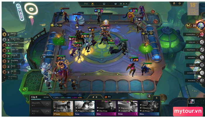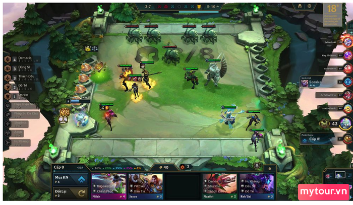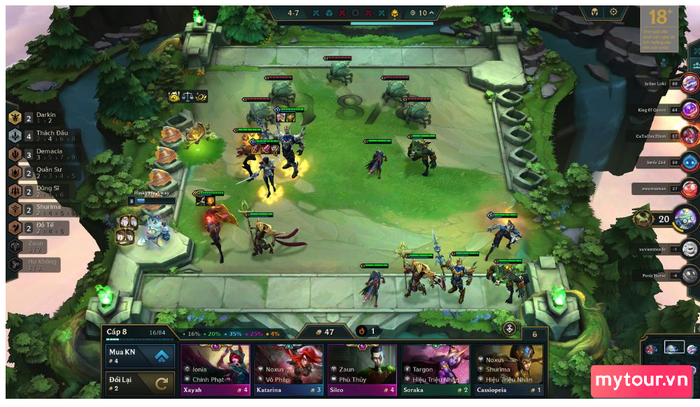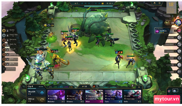 Sau khi lên cấp 8, hãy roll và hoàn thiện đội hình với những quân cờ được đề cử. Dành thời gian để xem đối thủ còn lại đang hướng đến lối chơi như thế nào và chú ý sắp xếp đội hình trước giao tranh.