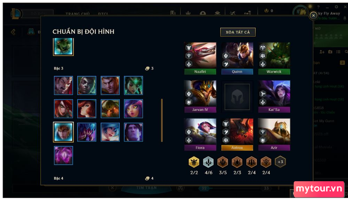 Với kỹ năng mang tên 'Điệu Van Tử Thần', Fiora thật sự là một quân bài đáng sợ, có khả năng hủy diệt hàng phòng ngự của đối thủ. Đội hình Demacia Thách Đấu ở cấp 8 bao gồm: Naafiri, Warwick, Quinn, Fiora, Kai'Sa, Javan IV, Azir và Aatrox.