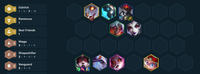 Để bắt đầu thuận lợi với đội hình này, người chơi nên kích hoạt 3 Kỳ Quái từ sớm với Ashe, Elise và Syndra. Có thể sử dụng Jayce ở tuyến đầu để kích hoạt 2 Hóa Hình nhằm tăng cường khả năng chống chịu. Khởi đầu này giúp đảm bảo tính cân bằng, đồng thời giữ lượng máu và vàng ổn định.