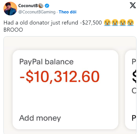 Trước đó, một streamer khác cũng đã bị đòi hoàn lại tiền, nhưng số tiền ít hơn nhiều, chỉ khoảng 7.500 USD. Anh ta thậm chí đã phải thực hiện một thử thách đặc biệt để thu hút donate. Nhưng số tiền đó sau đó đã bị đòi lại ngay sau khi anh ta hoàn thành thử thách.