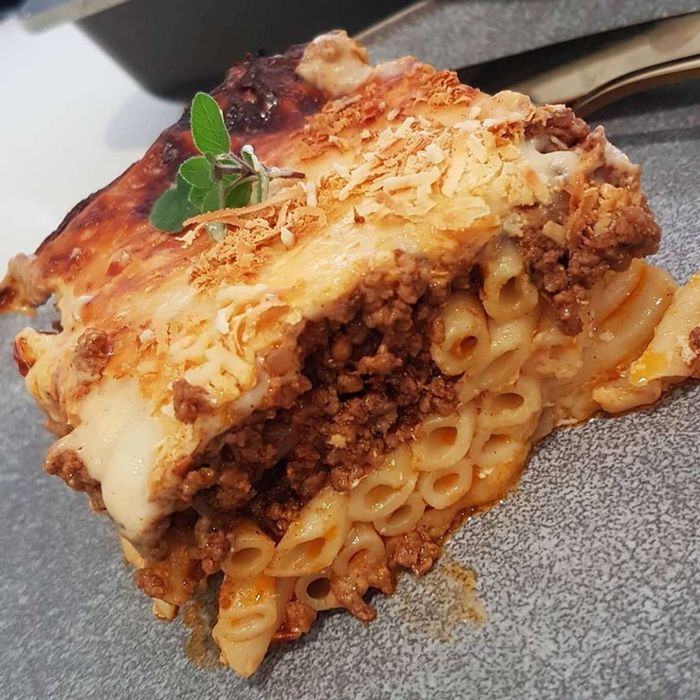 Bánh Pastitsio sau khi được cắt nhỏ @cook.with.katina