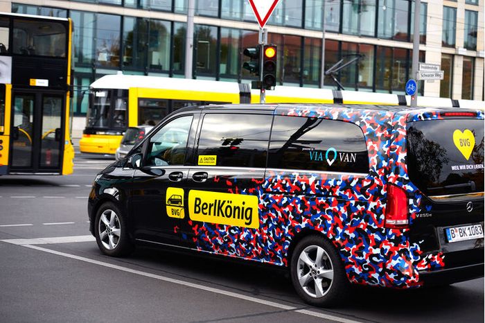 Berlkönig offers on-demand, ride-hailing public transport. Credit: BVGTừ tháng 9 năm 2018, Berlin đã thử nghiệm dịch vụ điện xe đa chỗ gọi là Berlkönig, có hơn 300 xe trong đội.