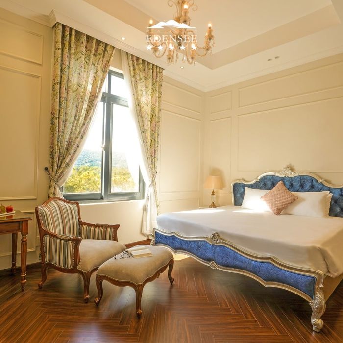 Sakura Villa, a majestic, luxurious, and secluded ancient building of Edensee Lake Resort & Spa Dalat, resembles a small castle, nestled on the pine hill, surrounded by vibrant cherry blossoms, creating absolute privacy. With a total area of nearly 900 square meters, Sakura Villa comprises 3 floors, an ideal place for a wonderful retreat with family, friends, and business partners, entertaining.