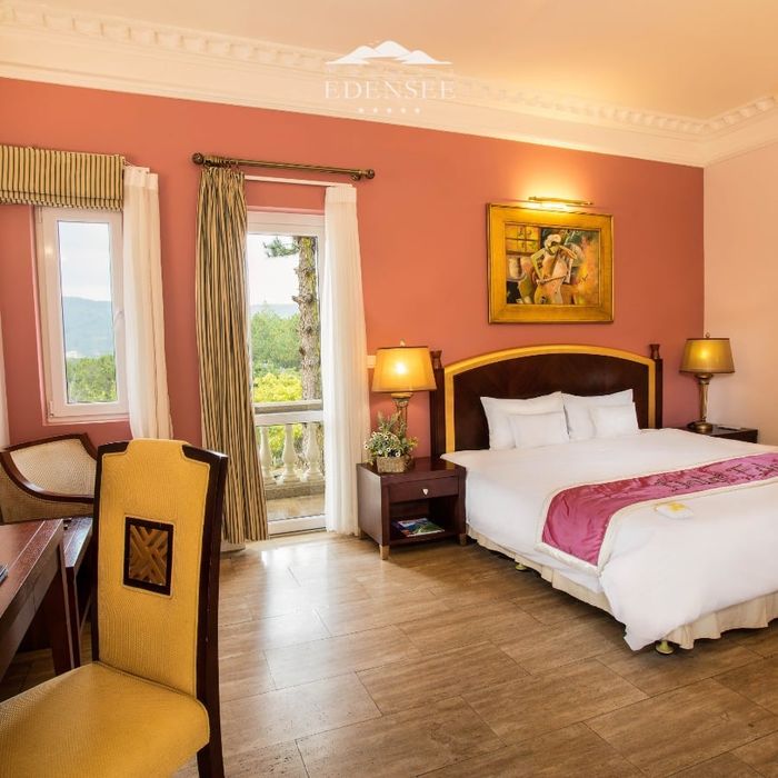 Mimosa represents the luxurious 5-star standard accommodation at Edensee Lake Resort & Spa Dalat. Mimosa comprises 40 guest rooms located within 20 villas, most of which overlook the lush pine hills. Each room is equipped with 40 twin rooms featuring 2 single beds that can be joined into a double bed upon request. Additionally, each room comes with a modern bathroom and a jacuzzi bathtub with a total area of 40 square meters.