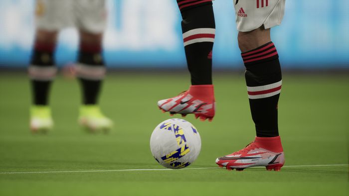 eFootball 2022 không chỉ đẹp dở ở mô hình nhân vật, mà đôi khi xuất hiện những lỗi đồ họa đen tối, do vấn đề của công nghệ trong quá trình stream asset đồ họa, cụ thể là tải dữ liệu texture bề mặt vật thể. Lỗi này có thể đổ lỗi cho ổ cứng HDD trên máy PS4 khi texture da nhân vật, sân bóng, và quan trọng nhất là bộ trang phục của cầu thủ mất gần nửa giây để tải xong trực tiếp trên màn hình, khiến cho trải nghiệm chơi game trở nên lẻo lơ. Thậm chí khi chơi bản PS4 của eFootball 2022 thông qua tính năng tương thích ngược trên PS5, tình trạng này vẫn diễn ra, chứng tỏ rõ ràng là vấn đề của game, chứ không phải do lỗi phần cứng. Hãy xem ví dụ hình ảnh mà chắc chắn sẽ khiến bạn có ác mộng đêm nay. Độ nét có thể cao, nhưng chất lượng bề mặt vật thể chỉ làm bạn liên tưởng đến thời đại của game PS3: