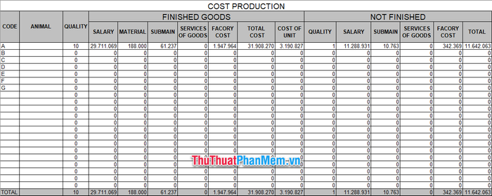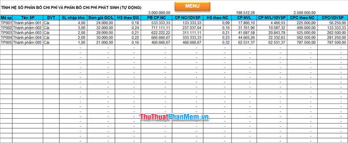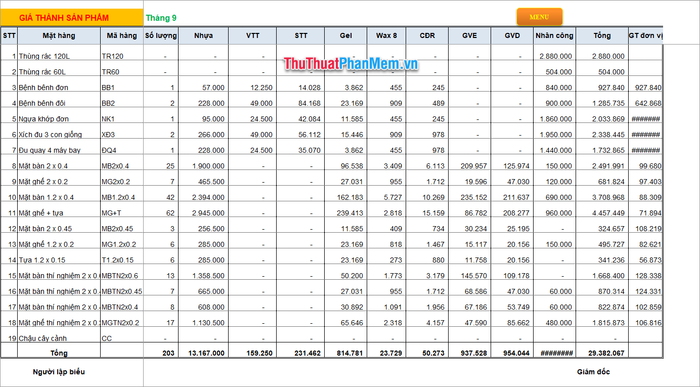 Khám phá hình ảnh thực tế với demo file Excel tính giá thành sản phẩm: