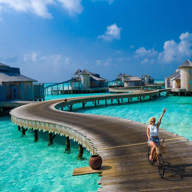 This resort is constructed from highly durable materials. The majority of the menu for meals here consists of organic food, and all waste is sent to the eco-processing center. Particularly, Soneva Jani also produces its own water and minimizes the use of plastic.