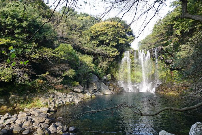 Cheonjiyeon Waterfall – Dubbed the 'God's Pond,' this waterfall originates from a cave, gradually pouring into the sea. The waterfall area boasts a rich flora and fauna, with the rare and endangered 'Solipan Bamboo' listed in the red book. Here, you can immerse yourself in the cool, azure waters.