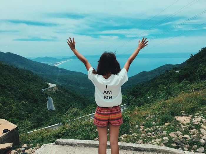 Admiring the panoramic view of nature from the peak of the Hai Van Pass.