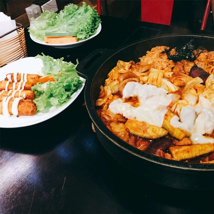 4th Floor, Vincom Da Nang: A Korean restaurant serving everything from cheese chicken hotpot to grilled dishes. We ordered a combo with a large cheese chicken hotpot served with noodles and tokbokki (if you can't handle spicy food, remember to inform the staff beforehand), salad, and a plate of fried cakes, totaling around 300,000 VND.