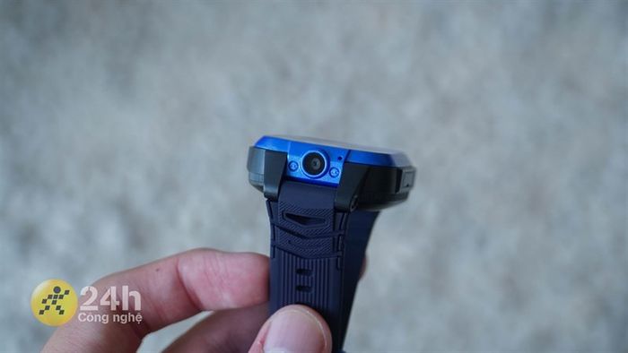 Kidcare S88's curved square display is both stylish and offers excellent visibility.On either side of Kidcare S88, you'll find all the essentials - a SIM slot on the left, physical buttons, a speaker strip with a water outlet on the right. Particularly, there's an additional camera lens on the top side. The back side only houses the charging port.