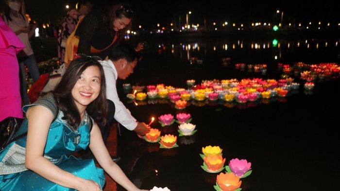 After the rituals, the ceremonial feast is brought down, and everyone gathers to enjoy it, symbolizing the shared prosperity bestowed by the Moon Deity and demonstrating strong family bonds. In addition to the solemn and meaningful ceremonies, the Ok Om Bok festival is also celebrated in temples, villages, and communities with lively festivities, including lantern festivals, traditional games, cultural performances, group singing and dancing to traditional tunes under the full moon's glow. Notably, the highly anticipated boat racing competition, known as the ghe ngo race, is one of the most eagerly awaited activities.