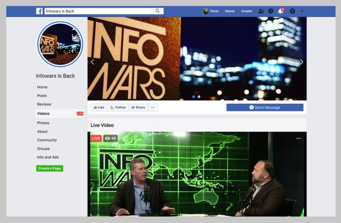 Lệnh cấm của Facebook vào thứ Năm đóng cửa kẽ hở đó, bằng cách triển khai một công cụ chống lại Infowars thường chỉ dành cho tổ chức khủng bố và nhóm thù địch tự xưng. Công ty nói rằng người dùng sẽ bị cấm chia sẻ video, đoạn radio, bài viết và nội dung khác từ trang Infowars trừ khi họ một cách rõ ràng lên án nội dung đó. Các trang người hâm mộ hoặc nhóm chia sẻ lại nội dung Infowars một cách chân thành hoặc đánh giá cao sẽ không được phép.