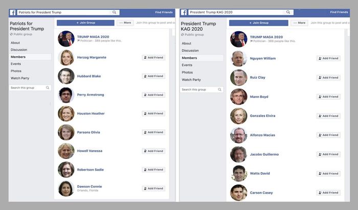 Facebook vào thứ Sáu đã loại bỏ những gì được gọi là một mạng lưới toàn cầu gồm hơn 900 tài khoản, trang và nhóm trên nền tảng của mình và Instagram được cho là sử dụng các hành vi đánh lừa để đẩy các cốt truyện ủng hộ ông Trump đến khoảng 55 triệu người dùng. Mạng lưới này sử dụng các tài khoản giả mạo, tăng cường nhân tạo và đặc biệt là hình ảnh hồ sơ của những khuôn mặt giả được tạo ra bằng trí tuệ nhân tạo để lan truyền nội dung chia rẽ, chủ yếu là thuộc phe cánh hữu, trên khắp web, bao gồm trên Twitter và YouTube.