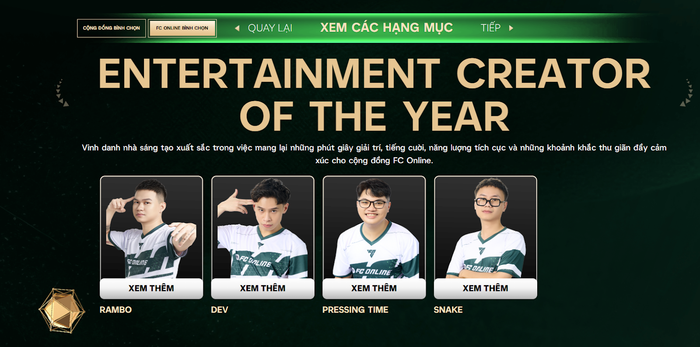 12 hạng mục do FC Online bình chọn và cuộc đua hấp dẫn giữa các Nhà sáng tạo