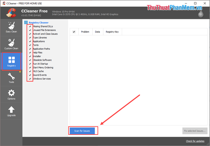 Step 2: Launch the software, select the Registry tab, and check all the items inside. Then, click Scan for Issues to initiate the scanning process.